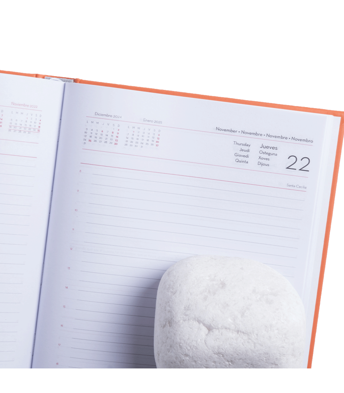 Agenda 2026  tamaño A5 con tapas de suave tacto acabadas en polipiel acolchado.