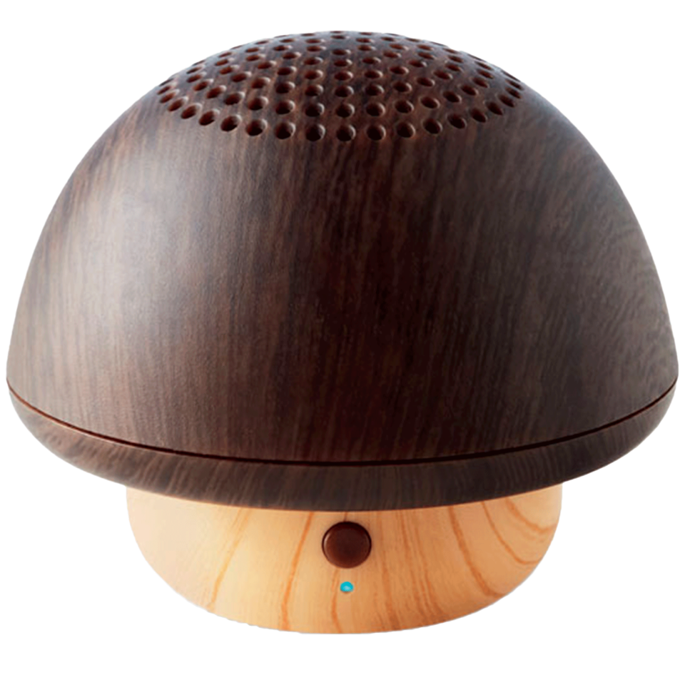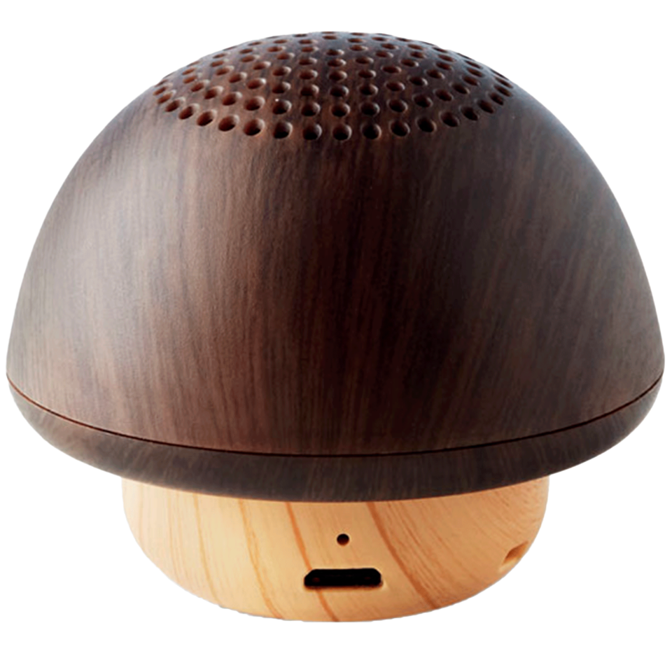 Altavoz inalámbrico 5.0 en ABS en forma de seta con apariencia de madera.