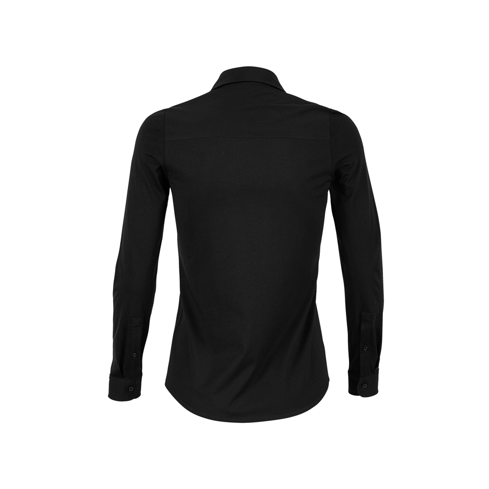 • Puños redondeados ajustables con dos botones y abertura con tapeta en punta