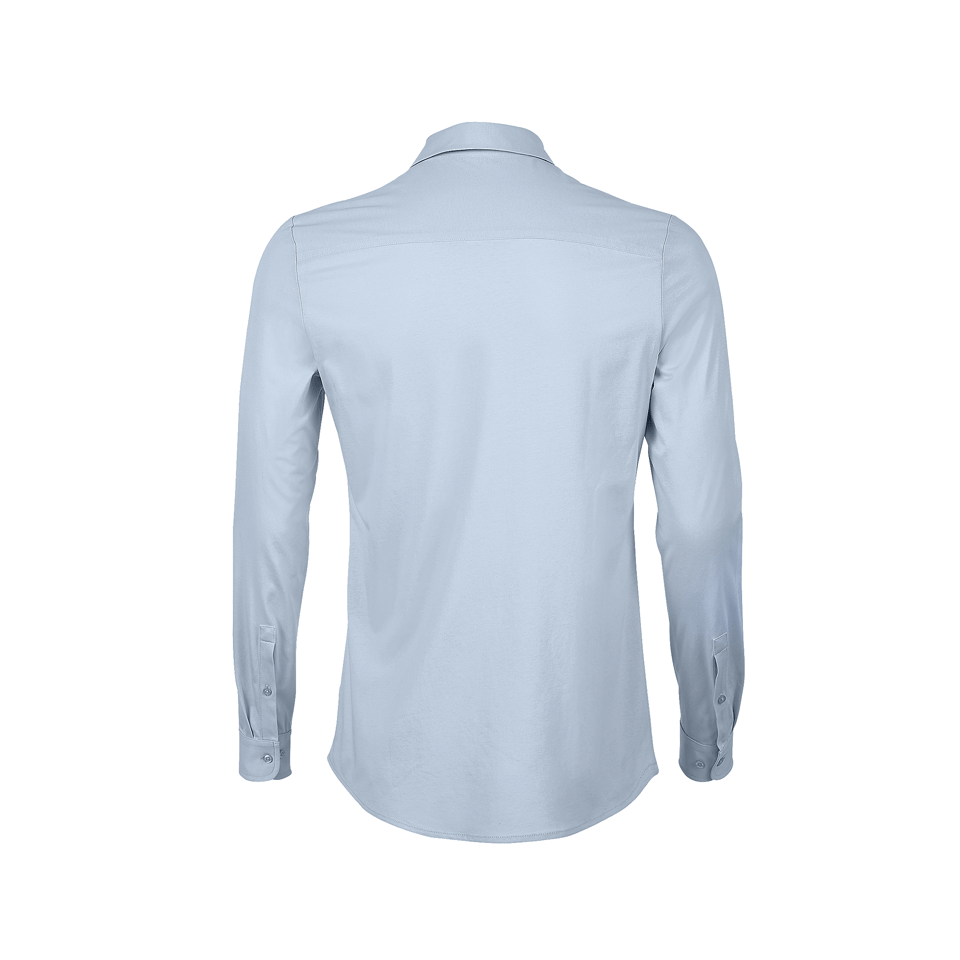 • Puños redondeados ajustables con dos botones y abertura con tapeta en punta