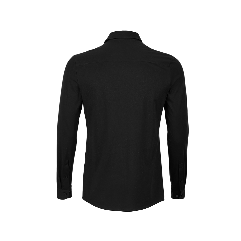 - Puños redondeados ajustables con dos botones y abertura con tapeta en punta