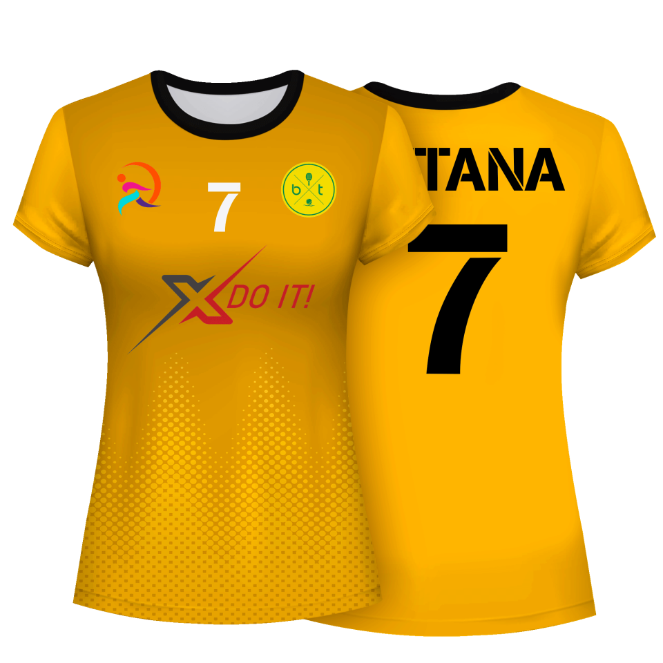Camiseta de mujer ideal para actividades como pádel. Modelo Abuya de manga corta que puedes personalizar hasta en 9 zonas diferentes.