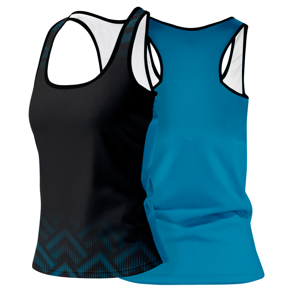 Camiseta de mujer ideal para actividades como pádel. Modelo Luanda con tirantes y espalda tipo nadadora que puedes personalizar hasta en 7 zonas diferentes.