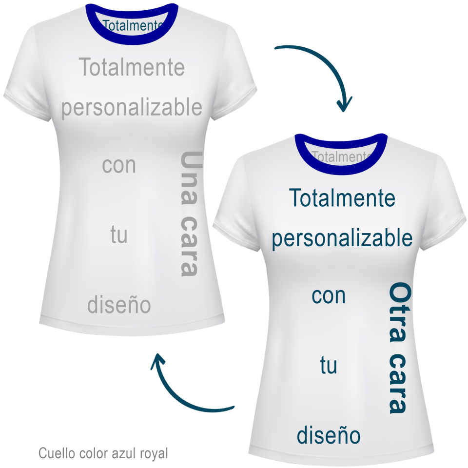 En esta prenda puedes personalizar la totalidad de la parte delantera, trasera y mangas. También podrás escoger el color del cuello.