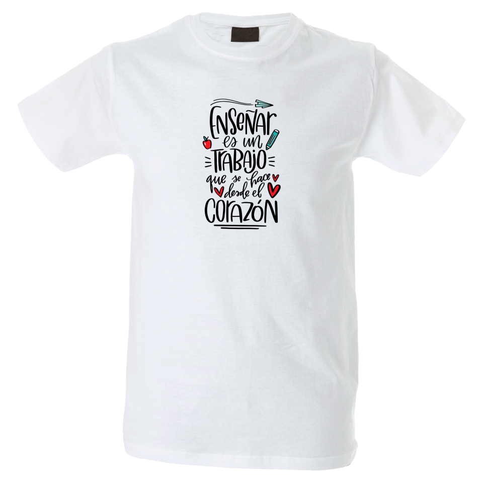 Camiseta hombre de cuello redondo con cinta de refuerzo en el cuello con diseño de enseñar es un trabajo