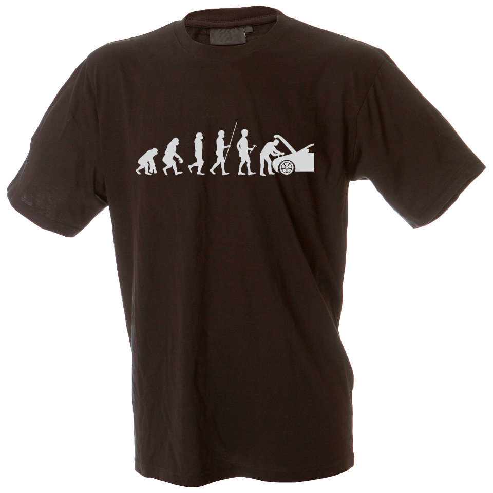 Camiseta hombre de cuello redondo con cinta de refuerzo en el cuello con diseño de evolución mecánico
