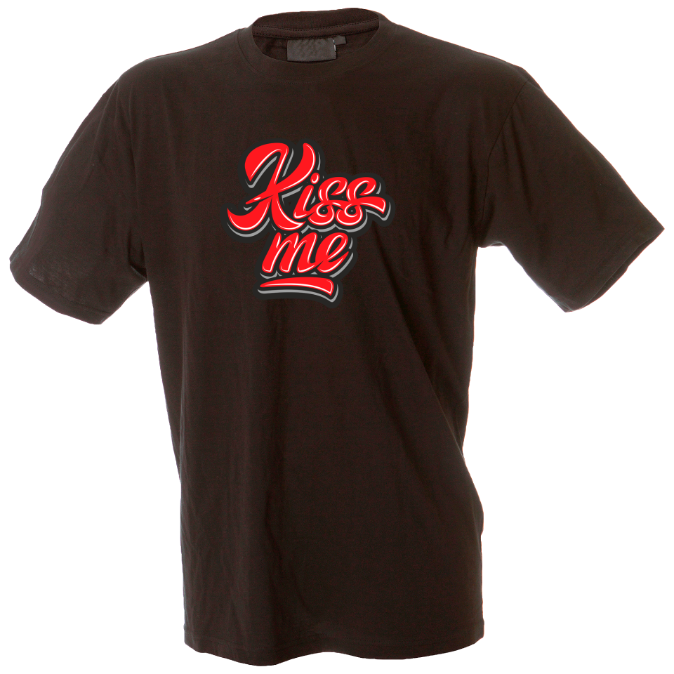 Camiseta hombre de cuello redondo con cinta de refuerzo en el cuello con diseño de kiss me