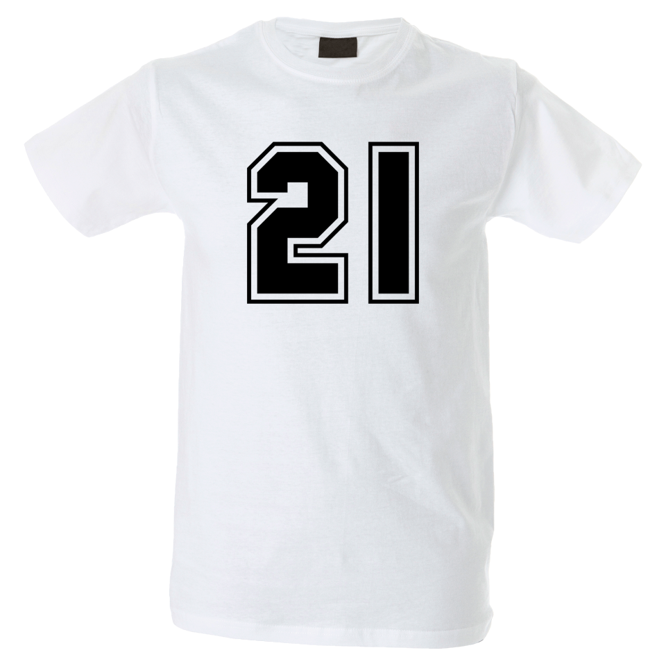 Camiseta hombre de cuello redondo con cinta de refuerzo en el cuello con diseño de número 21