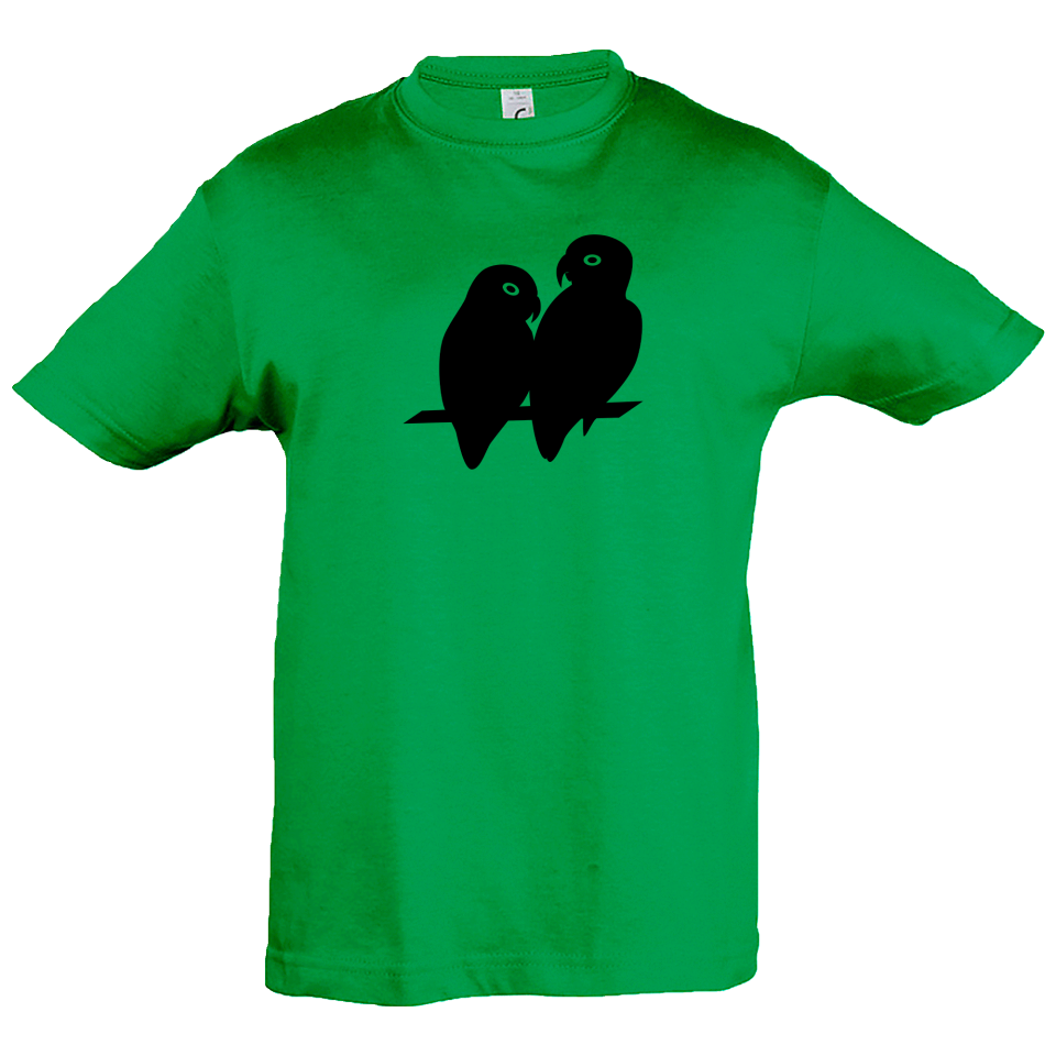 Camiseta de manga corta para niño/a con cuello redondo reforzado con diseño de pareja aves.