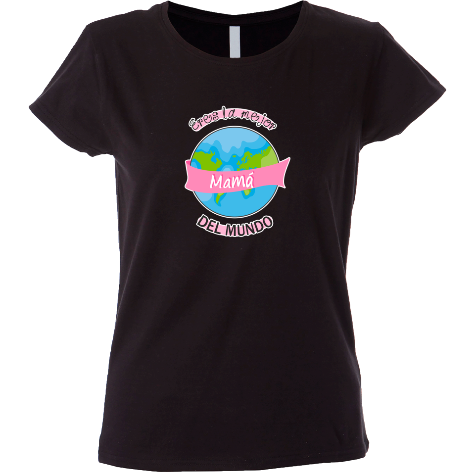 Camiseta mujer de manga corta con cinta de refuerzo en el cuello con diseño de mejor mamá del mundo