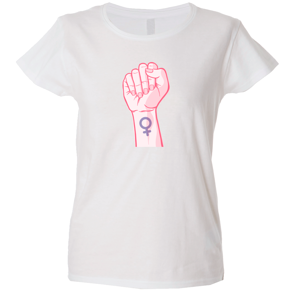 Camiseta mujer de manga corta con cinta de refuerzo en el cuello con diseño de puño feminista