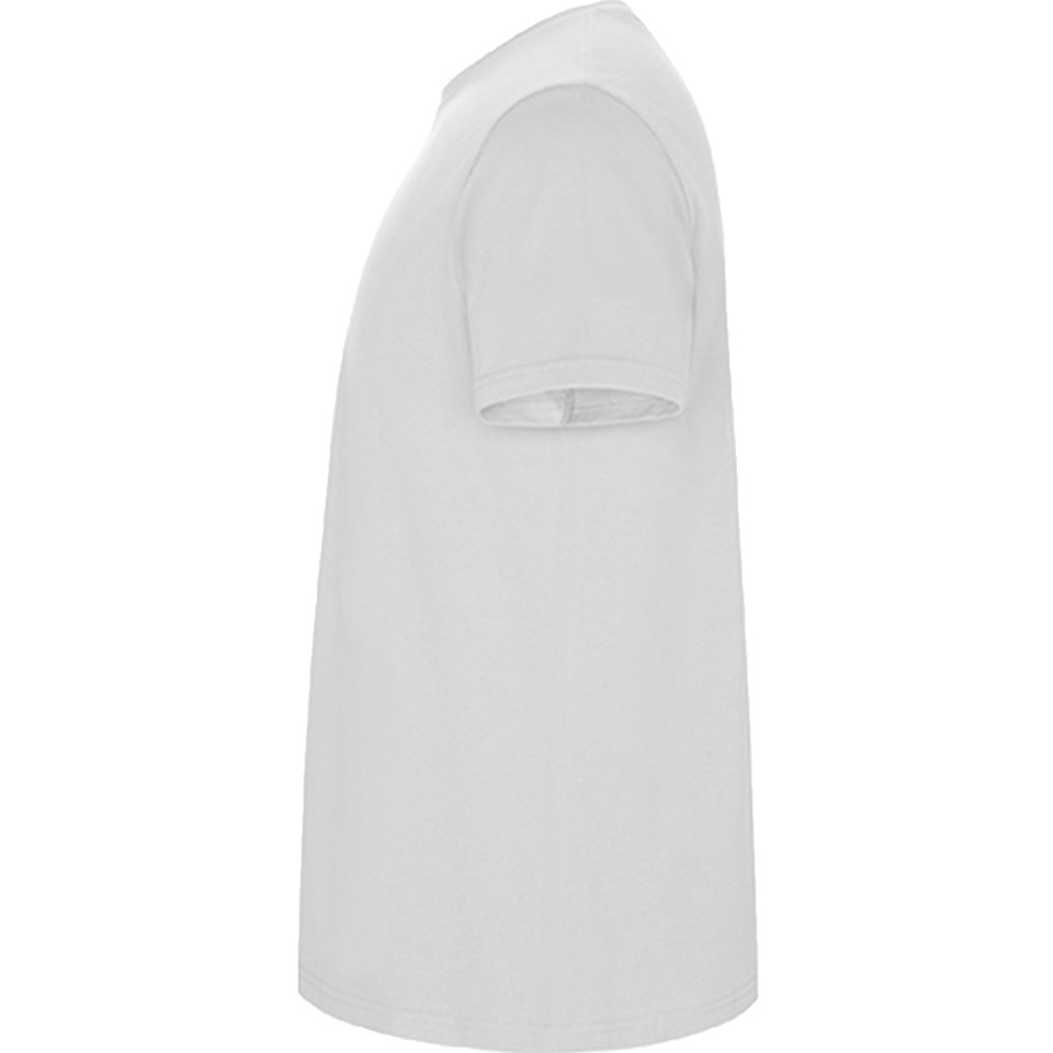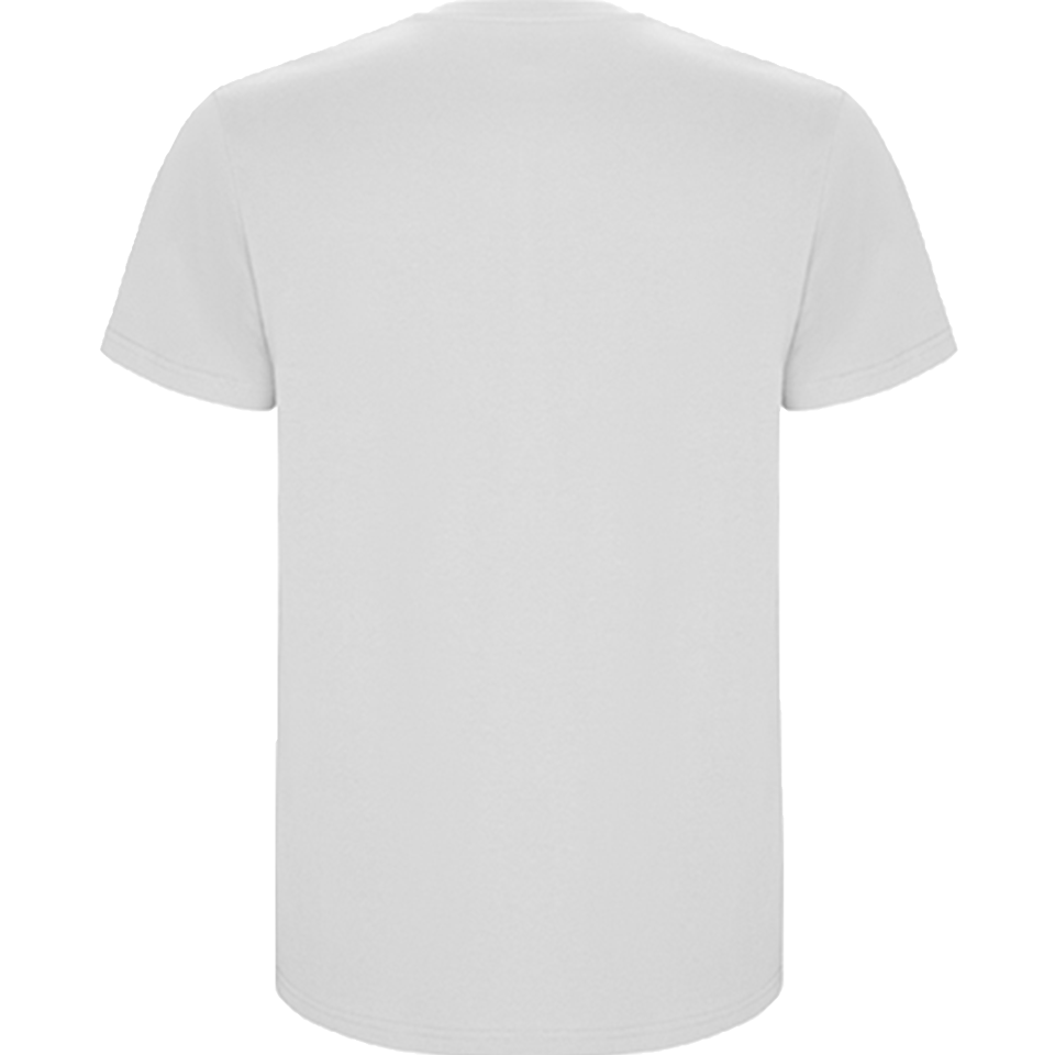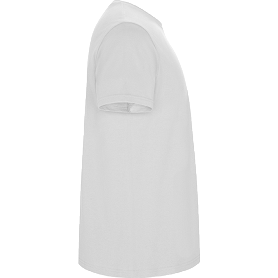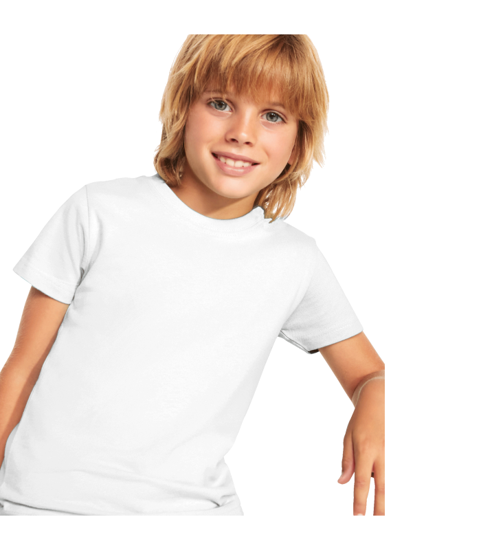 Camiseta tubular de color blanco con cuello redondo - 100% algodón, punto liso.
