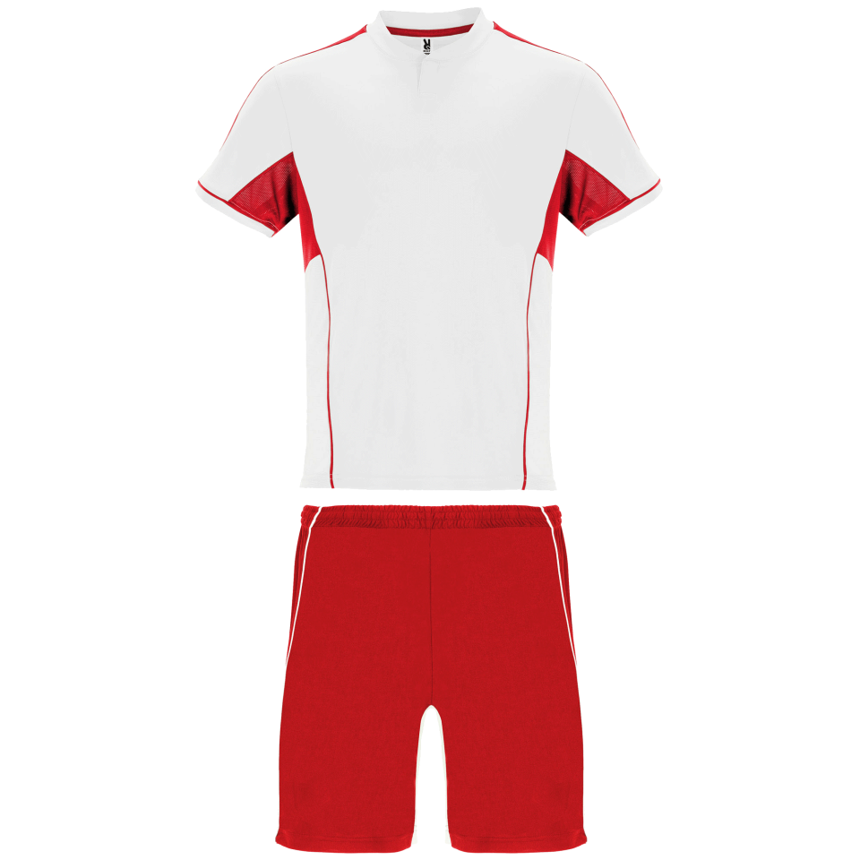Conjunto deportivo infantil compuesto de camiseta y pantalón, ideal para actividades como fútbol.