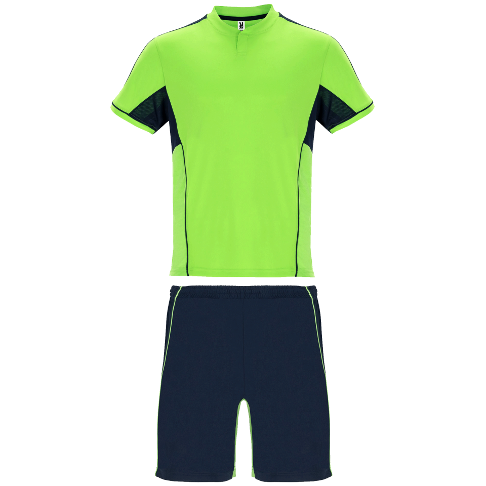 Conjunto deportivo infantil compuesto de camiseta y pantalón, ideal para actividades como fútbol.