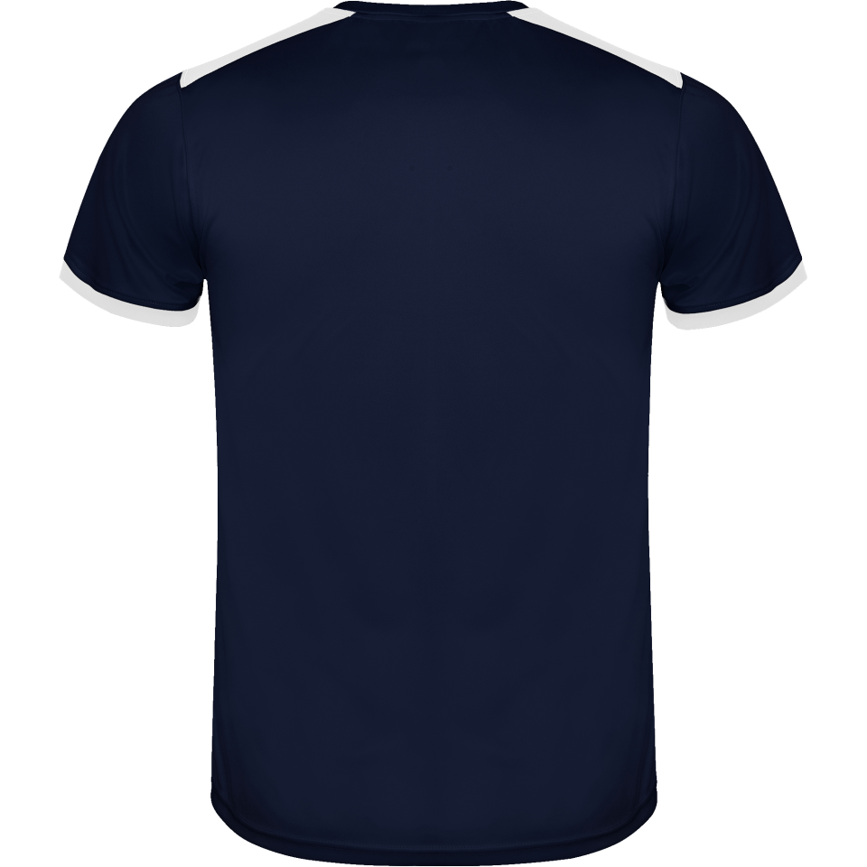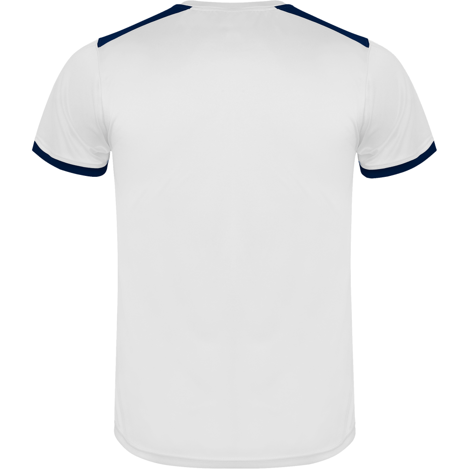 • Cuello redondo con ribete bicolor y con cubrecosturas reforzado en su interior