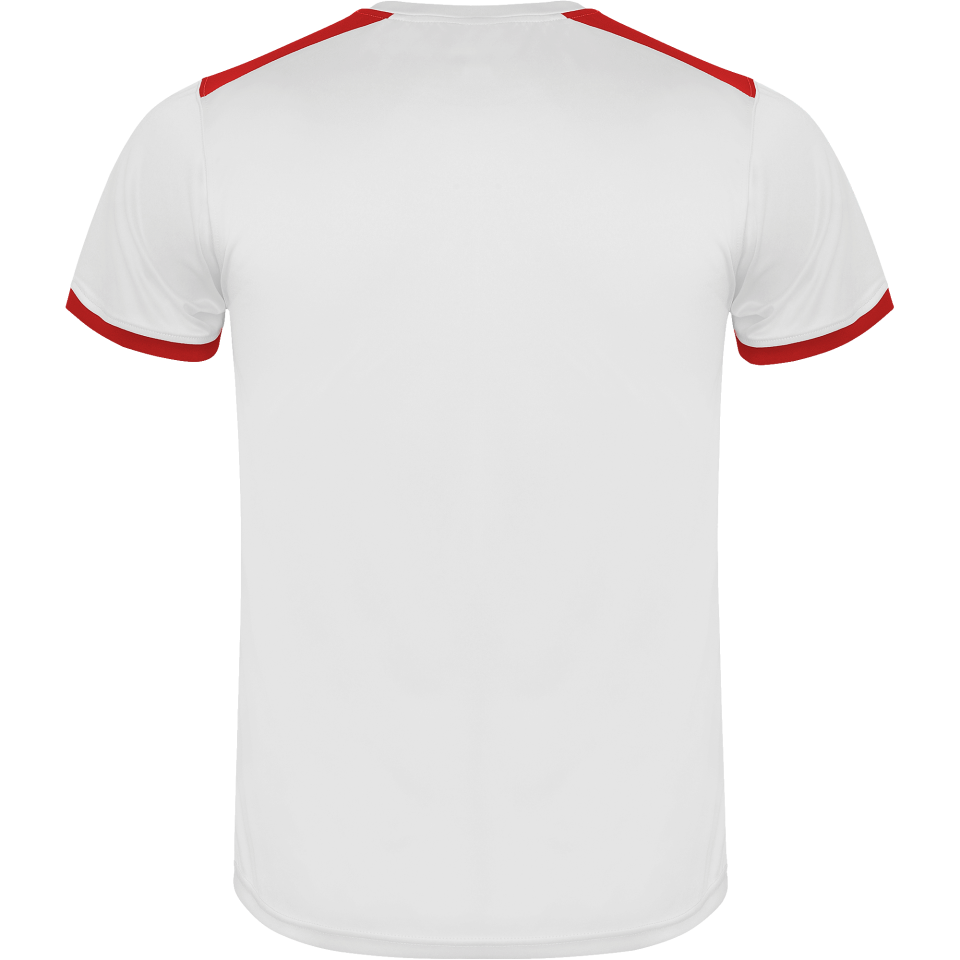 - Cuello redondo con ribete bicolor y con cubrecosturas reforzado en su interior
