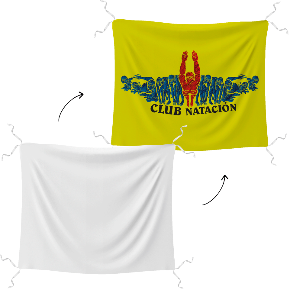 Para personalizar esta bandera utilizaremos sublimación. Es una técnica en la cual, a través del calor, se transfieren los colores del papel a la bandera. Nos permite aplicar abanicos de color muy ricos y variados. Los colores no se deterioran y se simplifica la realización de diseños complejos.