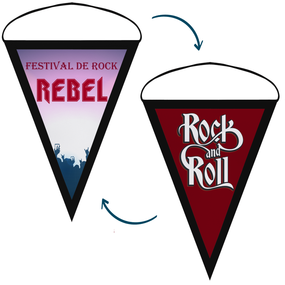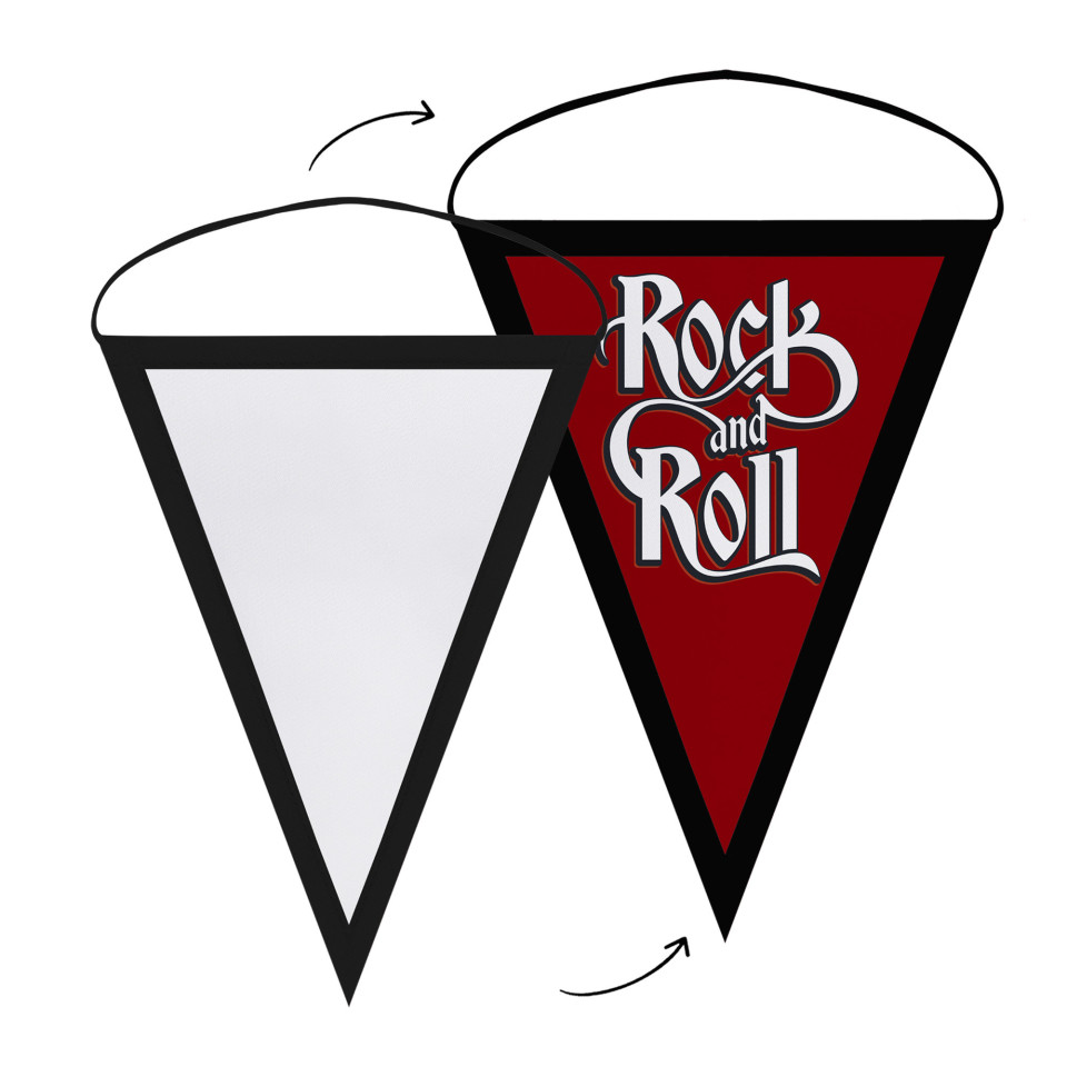 Banderín triangular, anchos de 9cm, 14cm, 18cm, 23cm y 25cm con cuerda y fieltro en su interior para darle cierta rigidez y de acabado semi-mate.