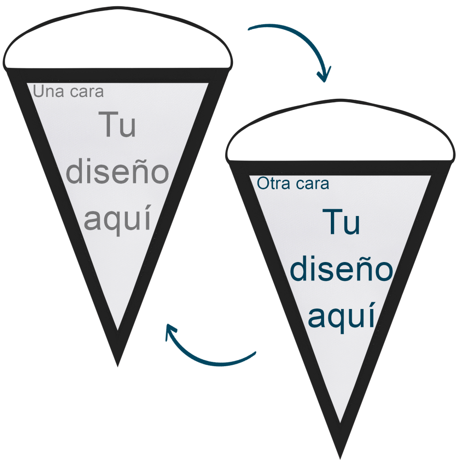 Este banderín es 100% personalizable en la totalidad del área marcada, en una o dos caras.