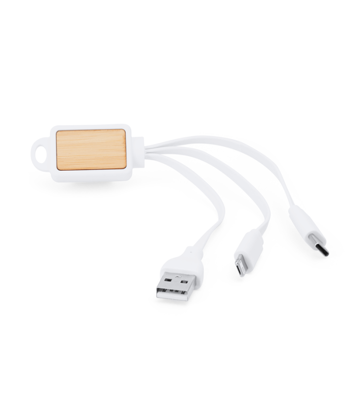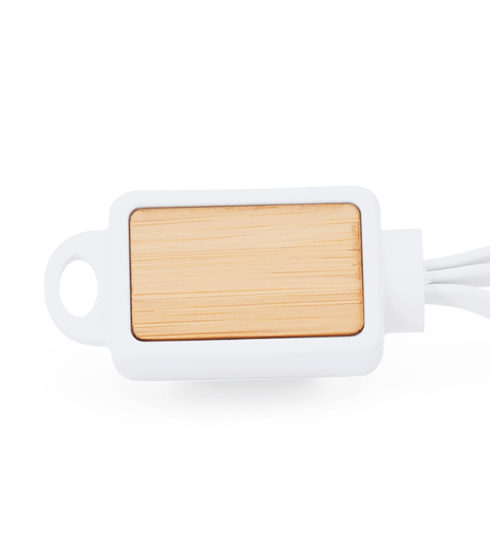 Cable cargador 3 en 1 diseñado con cuerpo rectangular en bambú
