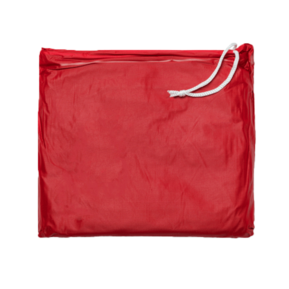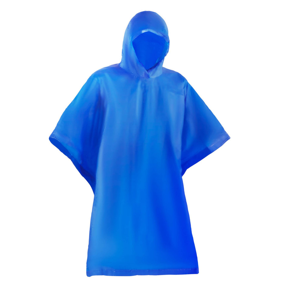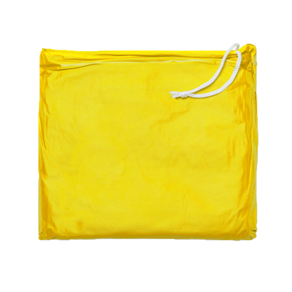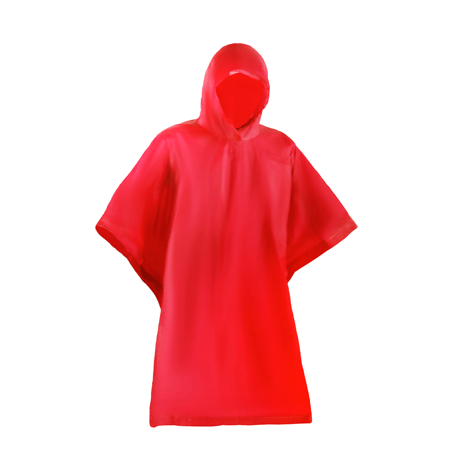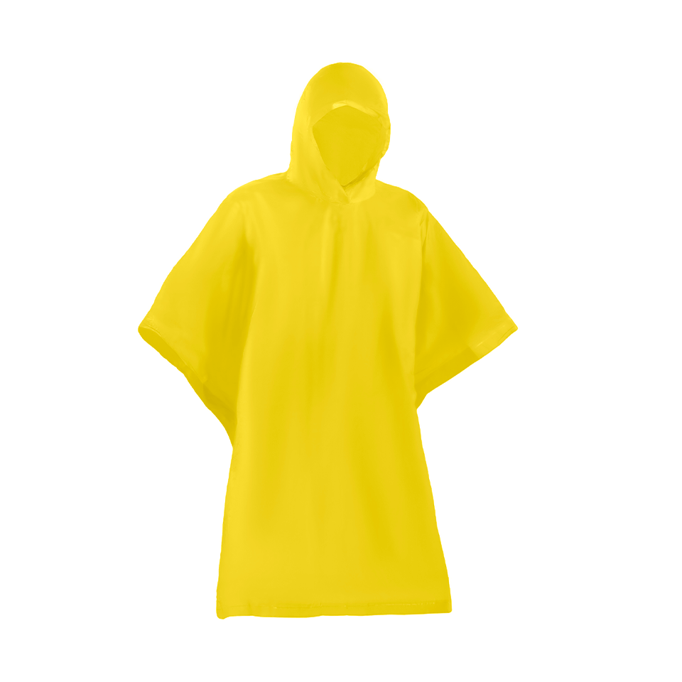 Chubasquero plegable, con cierre lateral con corchetes, con capucha y apertura para los brazos.