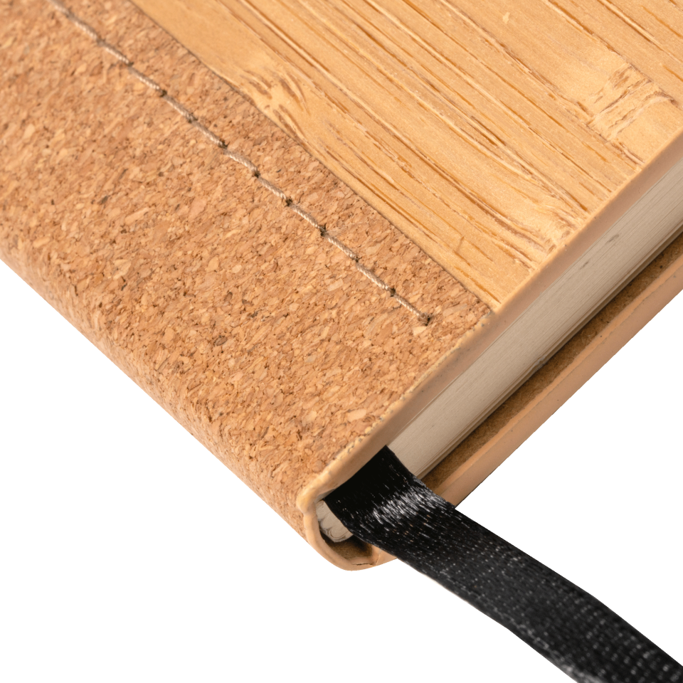 Libreta A5 (14,5x21x1,5 cm) de tapa rígida, realizada con bambú y corcho