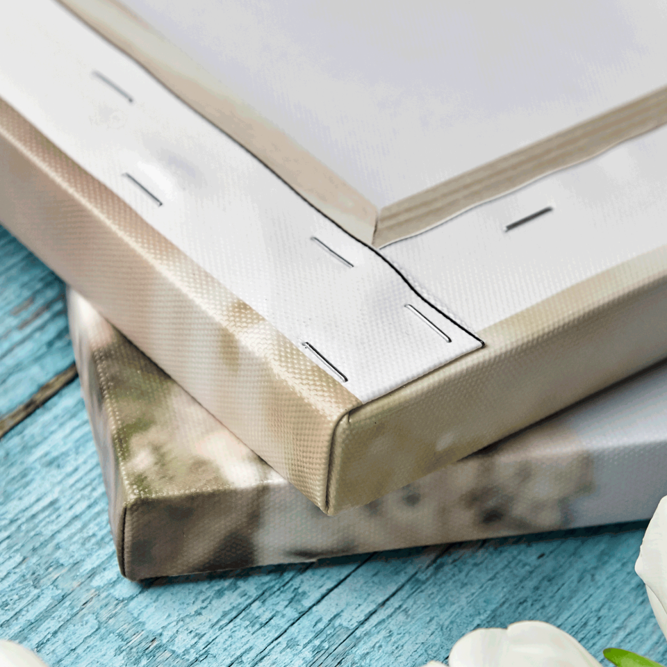 Utilizamos tela de algodón (con un porcentaje mínimo de poliéster) de fondo blanco texturizado de primera calidad (320 g/m2) ideal para nuestra impresión de alta definición con resolución mínima de impresión 900 x 900 ppp y color high quality. Este material es muy resistente, por lo que tus lienzos serán muy duraderos.