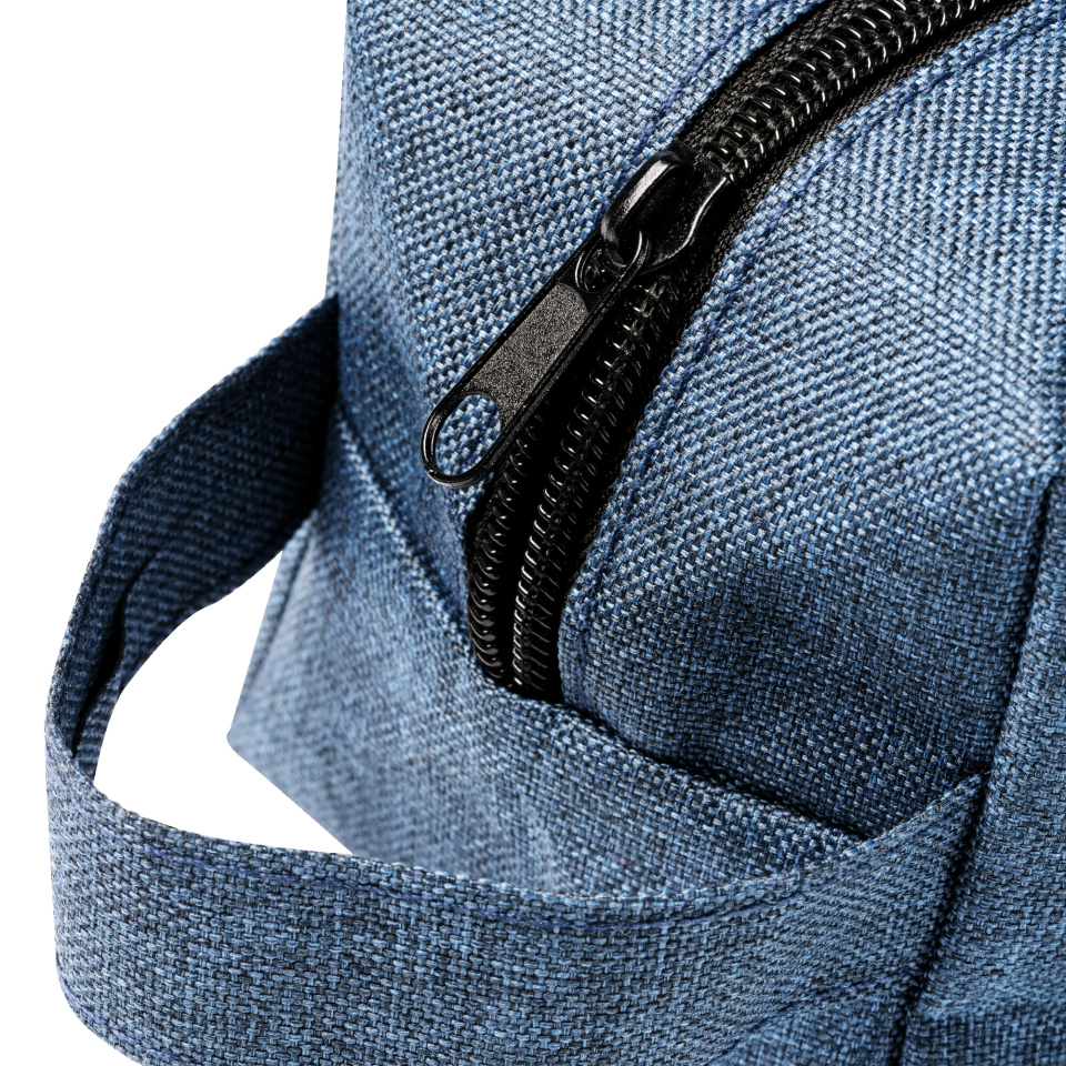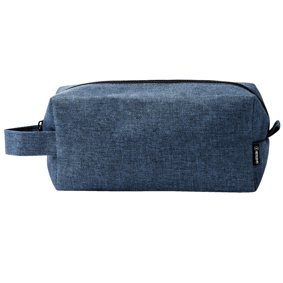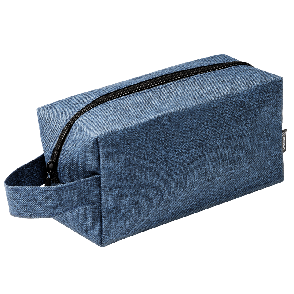 Neceser realizado en 600D RPET con diseño jaspeado, cierre de cremallera y una asa de transporte