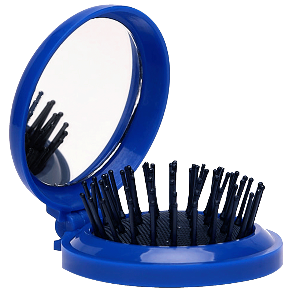 Práctico cepillo plegable con espejo redondo de bolsillo