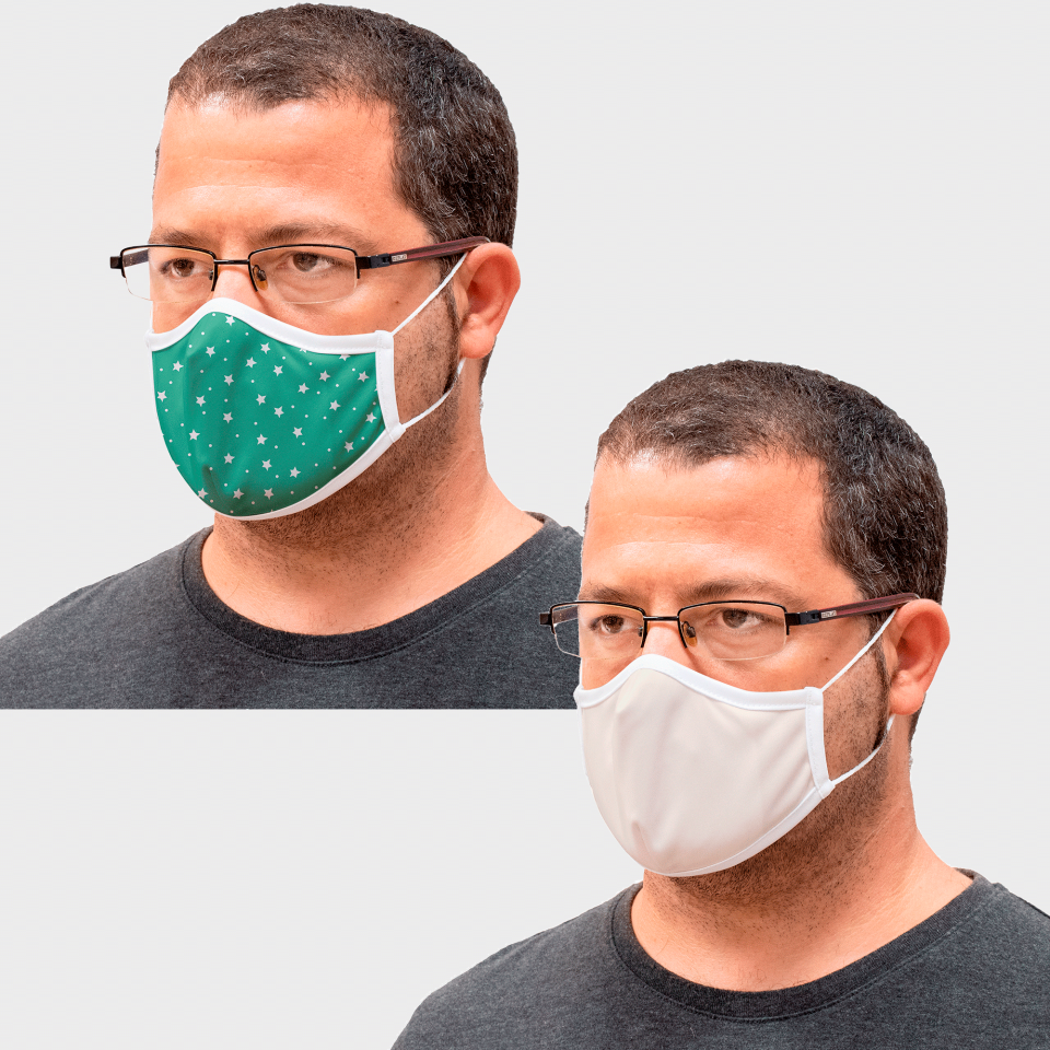 Mascarilla algodón orgánico reversible grande estrellas verde homologada con protección +90%