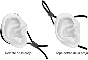 En las gomas viene incorporado un tope regulador, el cual, puedes colocarte de dos formas distintas y ajustarte la goma de la forma que te resulte más cómoda. (Con la compra de cada mascarilla incluimos dos topes extra).