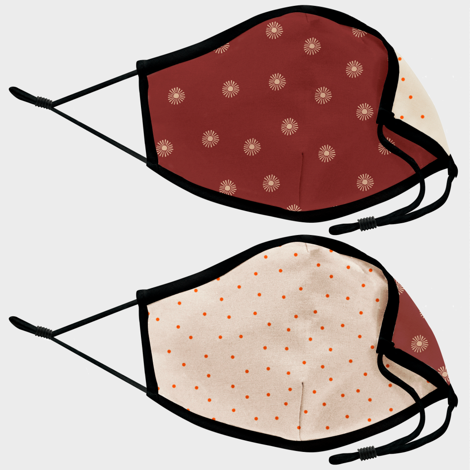 Mascarilla algodón orgánico reversible mediana topos y soles homologada con protección +90%