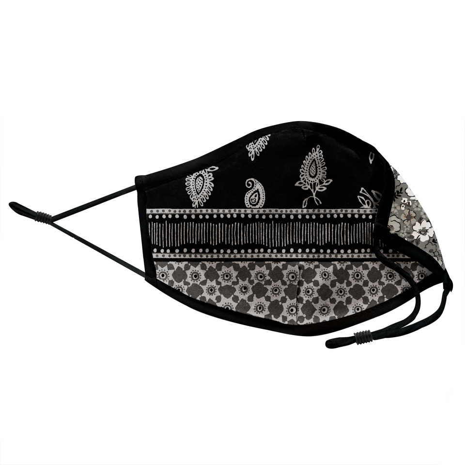 Mascarilla algodón orgánico reversible pequeña bandana black y flower black homologada con protección +90%