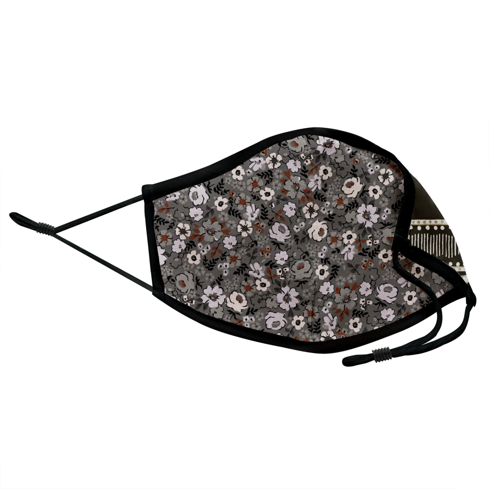 Mascarilla algodón orgánico reversible súper grande bandana black y flower black homologada con protección +90%