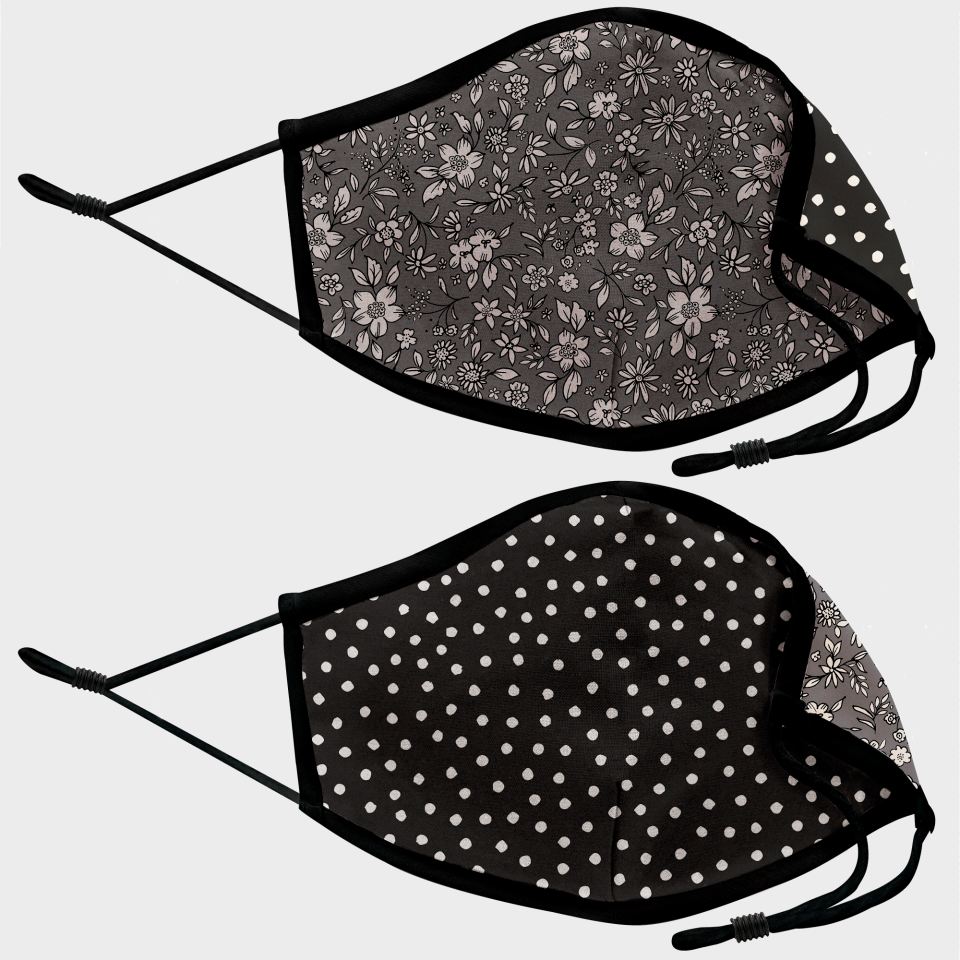 Mascarilla algodón orgánico reversible mediana dots black y flower antracite homologada con protección +90%