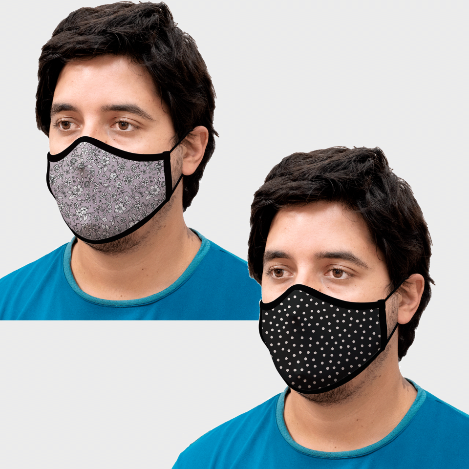Mascarilla algodón orgánico reversible súper grande dots black y flower antracite homologada con protección +90%