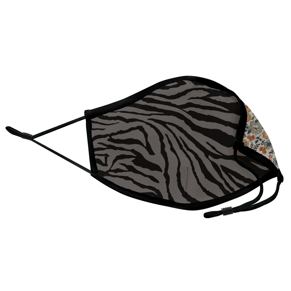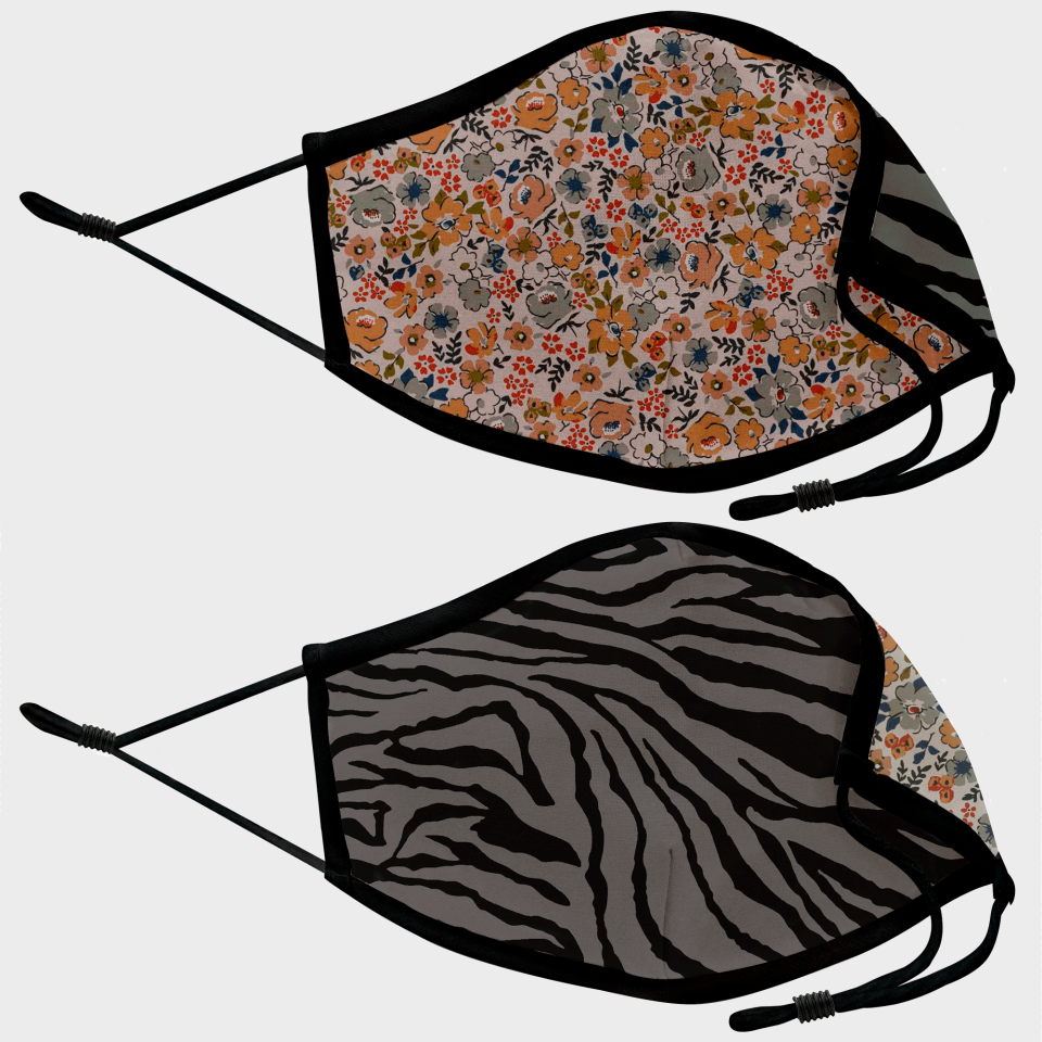Mascarilla algodón orgánico reversible mediana ditsy flower grey y zebra black homologada con protección +90%