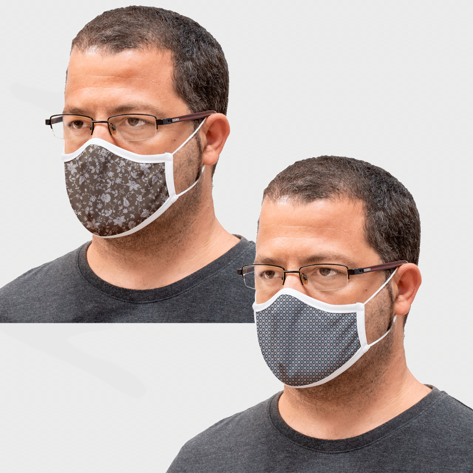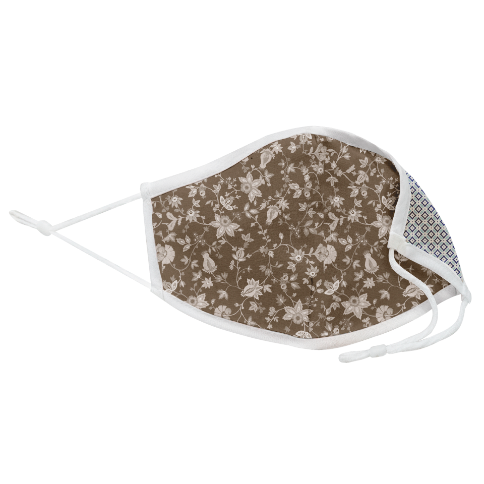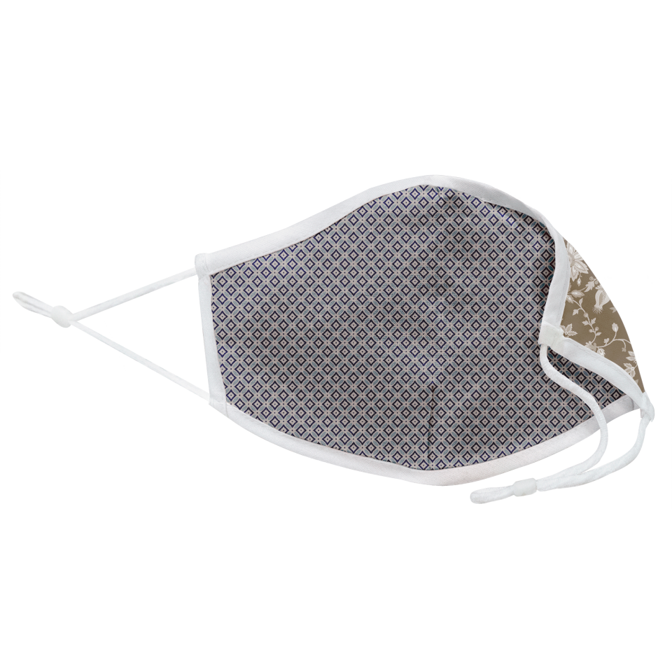 Mascarilla algodón orgánico reversible grande provençal flower stone y geo tie blue homologada con protección +90%
