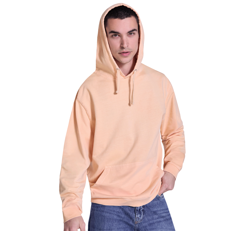 Sudadera con capucha y bolsillo canguro con acabado lavado ácido, 100% algodón