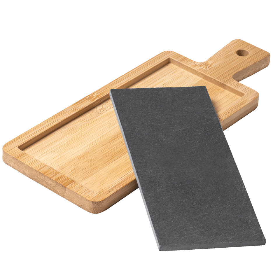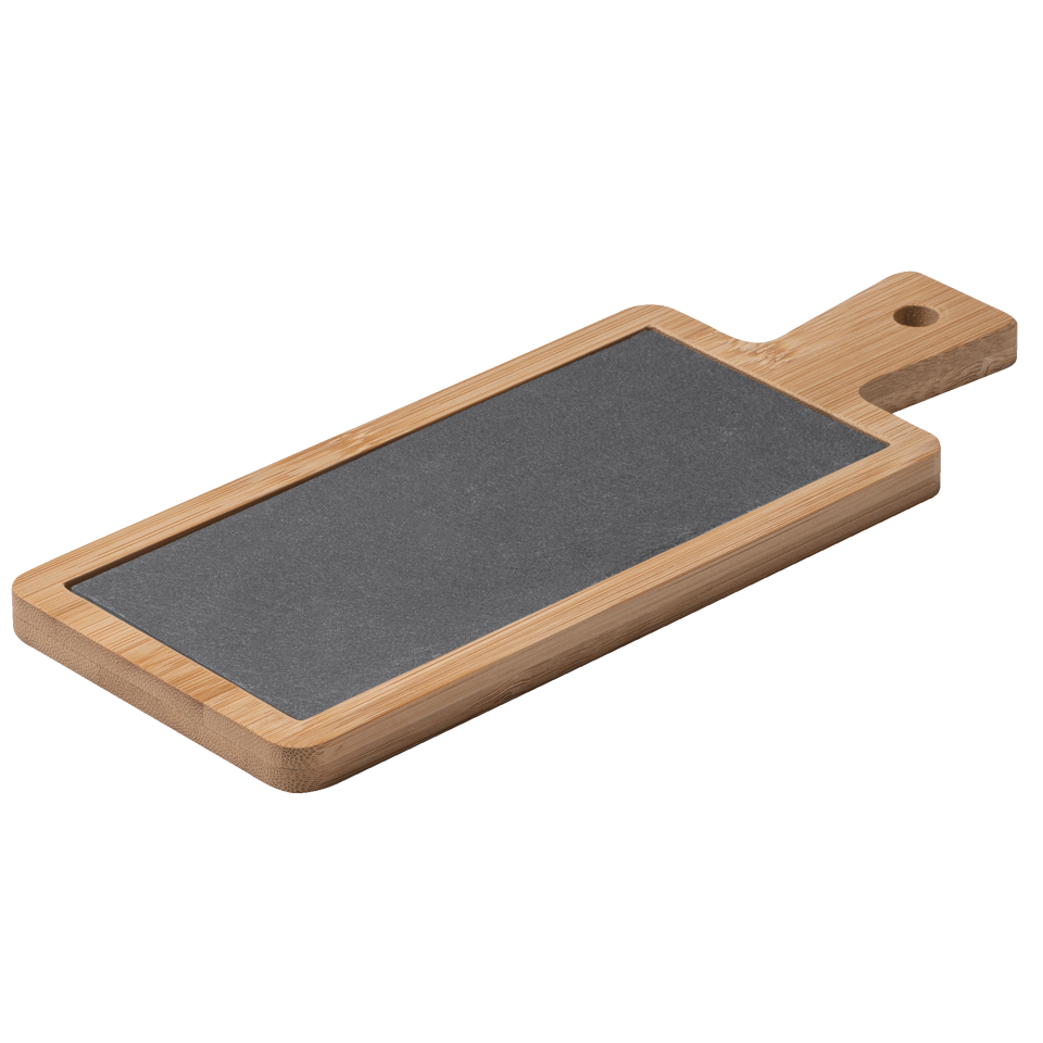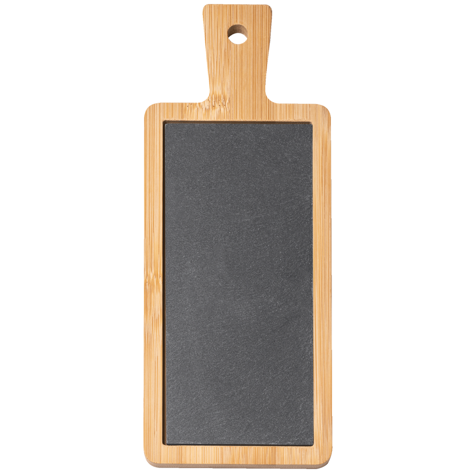 • Tabla de madera de bambú y pizarra