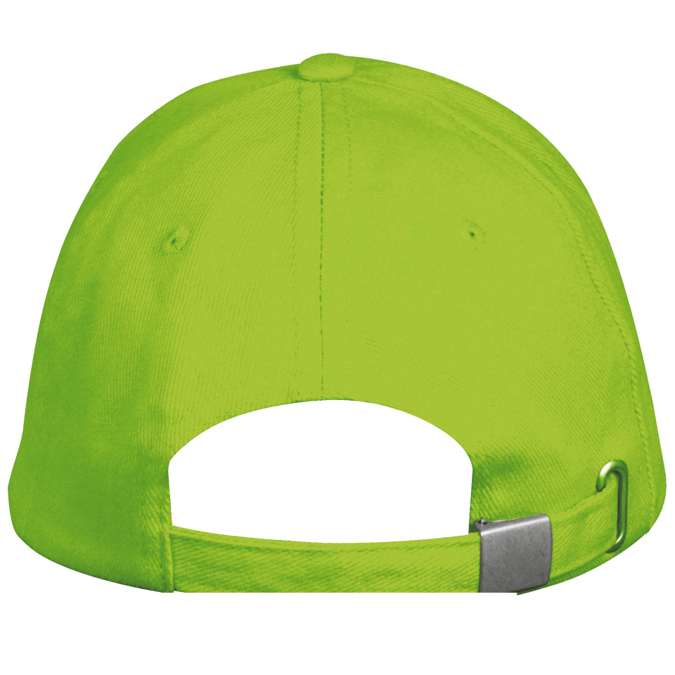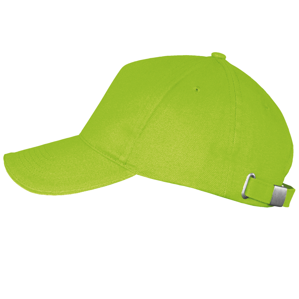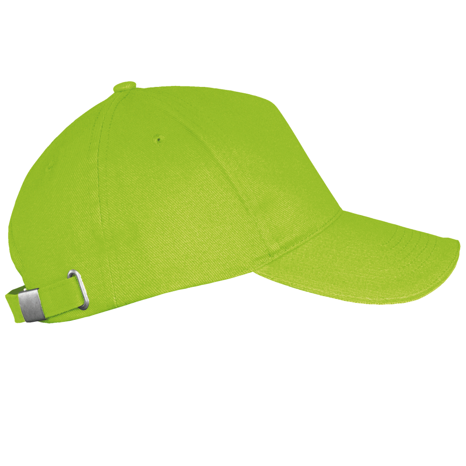 Gorra de 5 paneles con cierre trasero regulable con una hebilla metálica; 100% algodón perchado espeso.