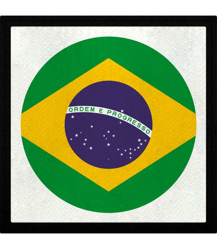 Parche stick DTF Eco flock negro con diseño de logo de bandera de Brasil.