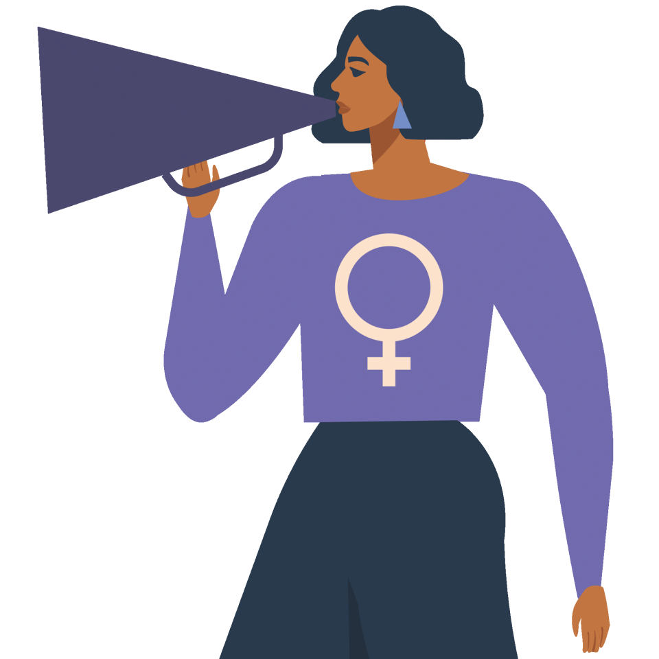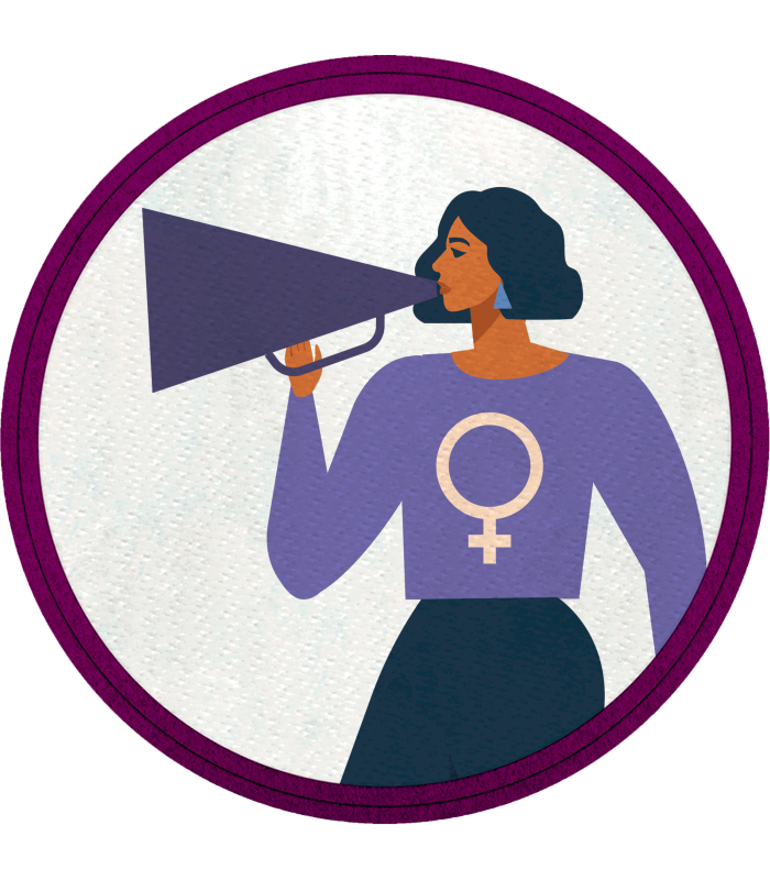 Parche redondo para el día de la mujer diseño Chica Hablando